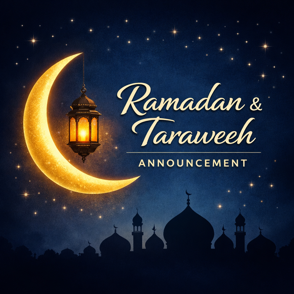 Dear community members, as we prepare to welcome the blessed month of Ramadan, we extend our heartfelt congratulations to our community. Ramadan is a tremendous blessing from Allah and a special opportunity for renewal, reflection, and drawing closer to Him — let us make the most of every moment.